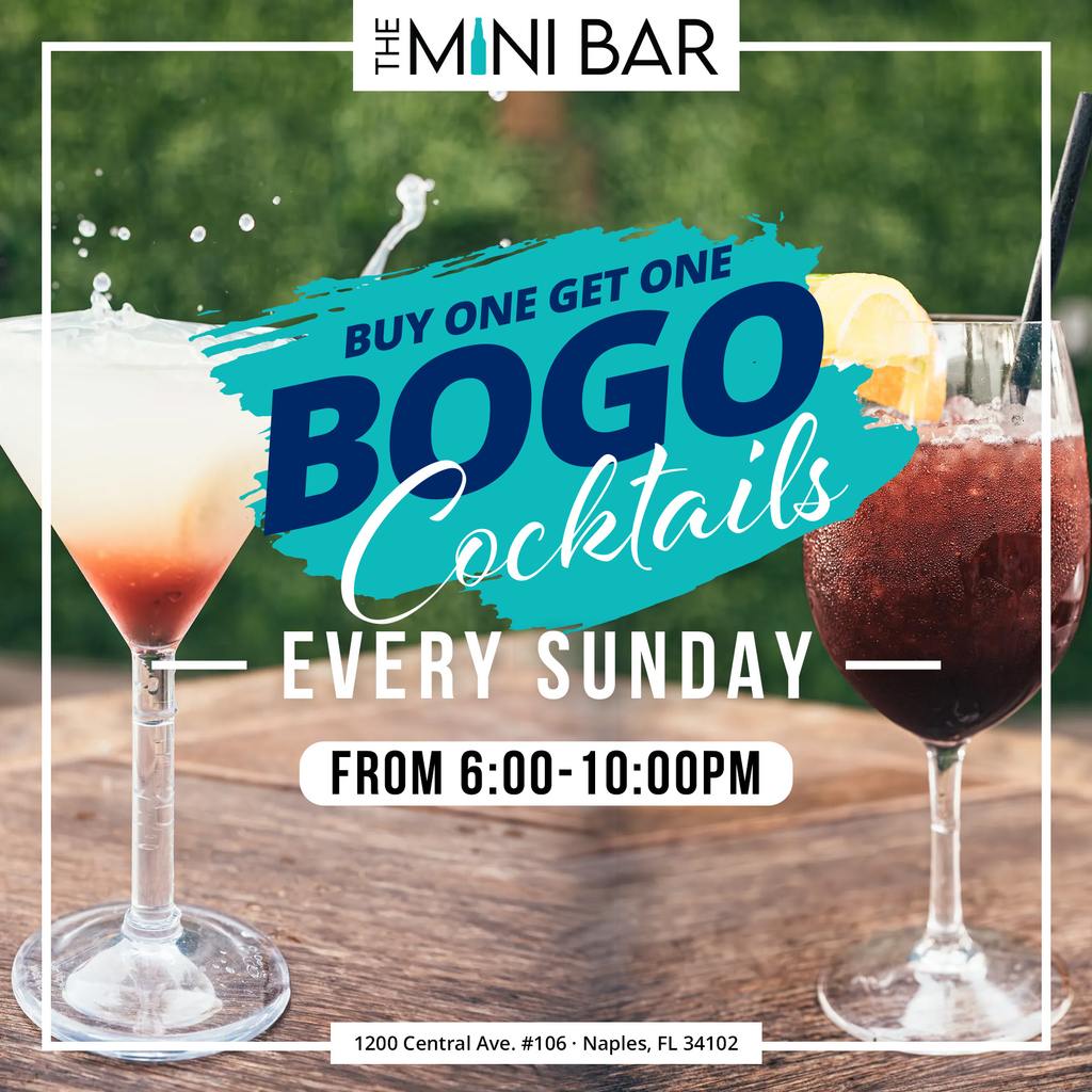 Buy one cocktail and get another one for free, every Sunday at The Mini Bar!